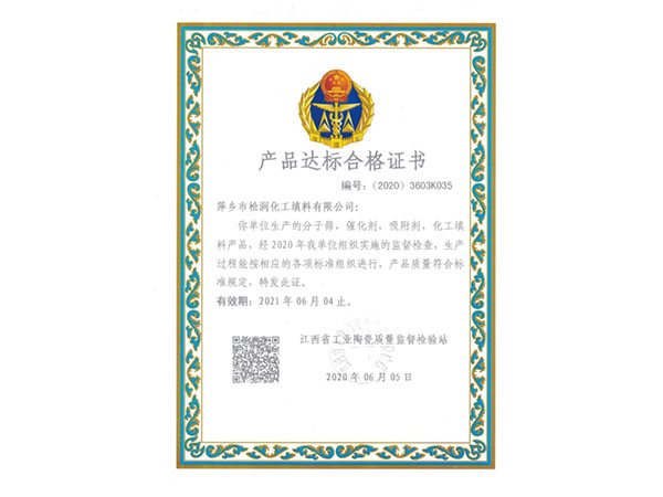 產品達標合格證書